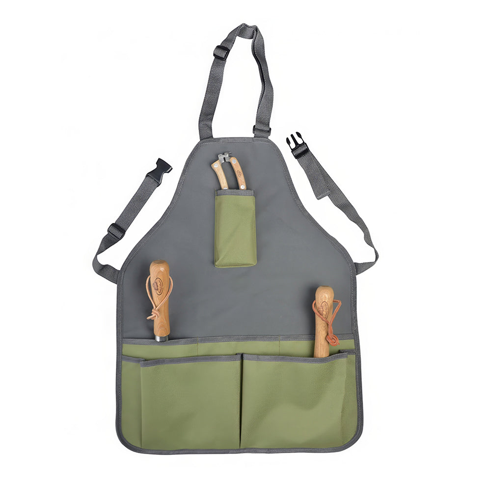 Stay organized and protected while gardening with this Design Garden Tool Apron. Made from durable gray and green canvas with plastic clasps, it provides convenient access to your tools while keeping your clothes clean. Measuring 72" x 39", this apron offers full coverage for gardening or yard work. Lightweight and ready to use—no assembly required.