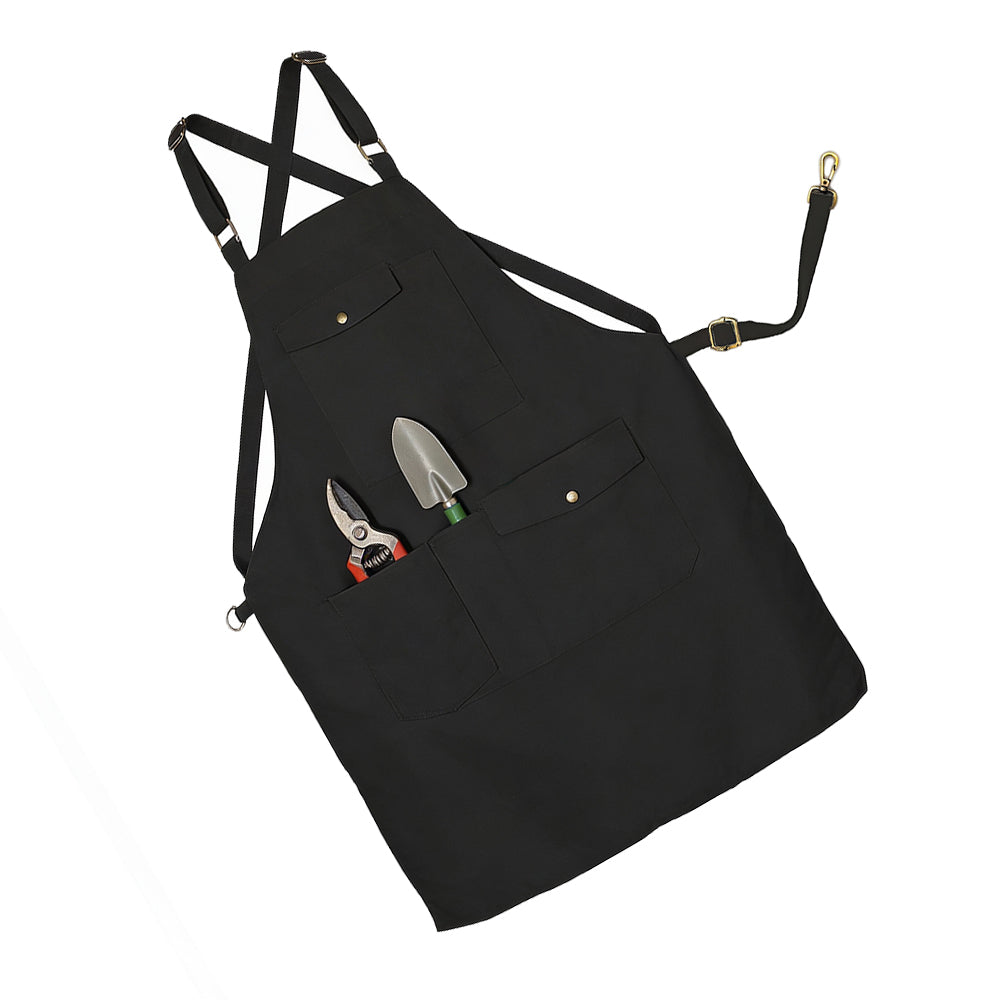 The apron features a practical multi-pocket design to keep essential tools within easy reach, including a dedicated canvas pocket suitable for trimming shears. Adjustable cross-back straps provide a secure and customizable fit while helping reduce neck strain during extended use. Suitable for Large to Extra-Large sizes, this apron is ideal for a variety of outdoor tasks in different weather conditions.