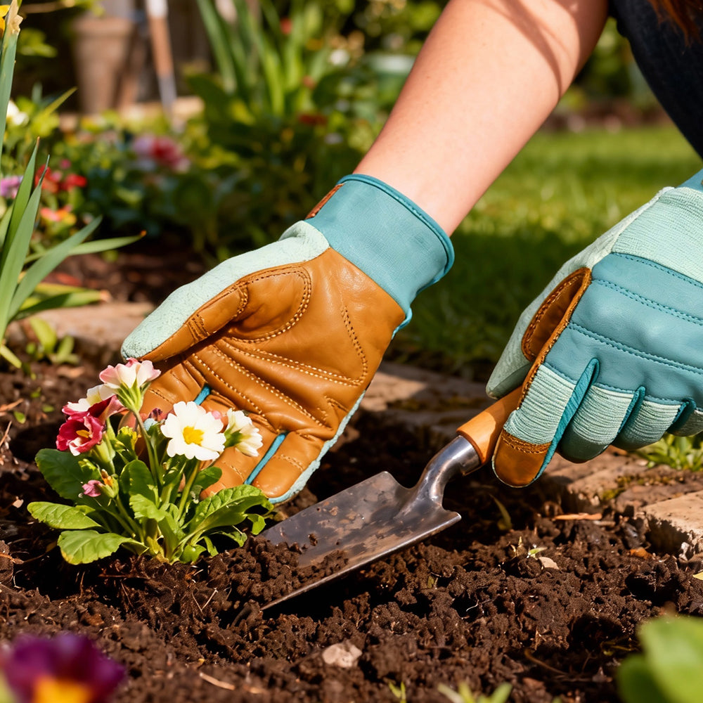 Stay protected and comfortable with the Women’s Leather Hybrid Gloves. Designed for durability, flexibility, and all-day wear, these gloves feature a water-resistant cowhide leather palm that resists abrasions and punctures. The stretch spandex back enhances breathability and flexibility, while reinforced fingertips and padded palms provide superior grip and control. An adjustable wrist closure ensures a secure fit and keeps dirt out. Perfect for gardening, landscaping, and farming.